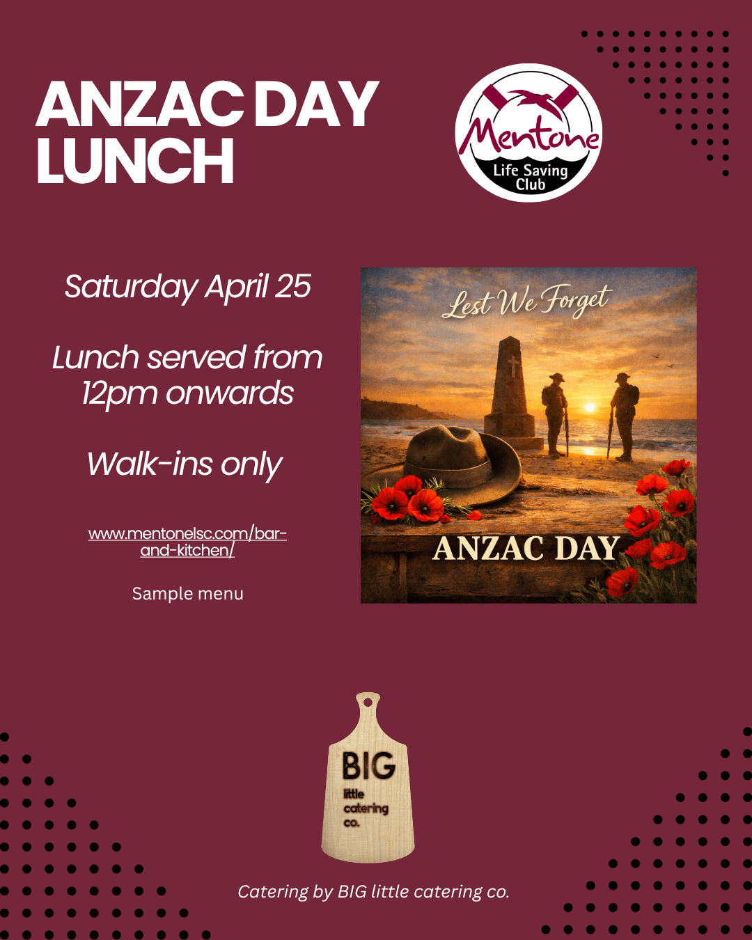 ANZAC Day Lunch 12pm