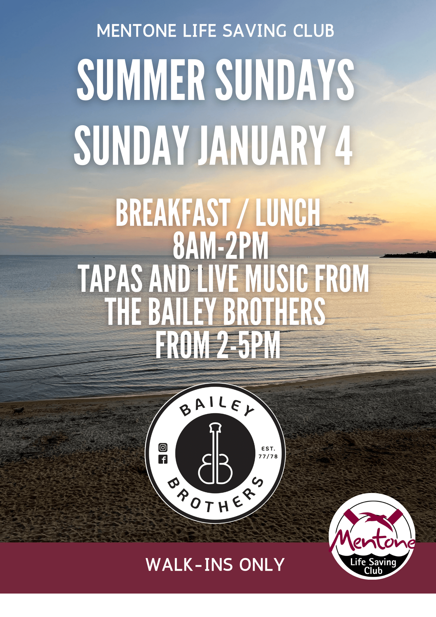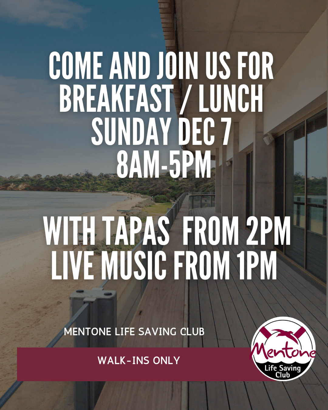 No bookings - Walk ins only Music and Tapas Come on up after Nippers Tapas from 2pm Live music from 1pm.